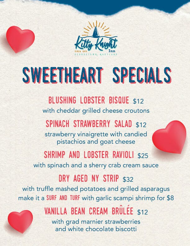 In addition to our great weekly specials, be sure to check out our Valentine's Weekend menus including great dinner features and a Sunday brunch perfect for you and your sweetheart.